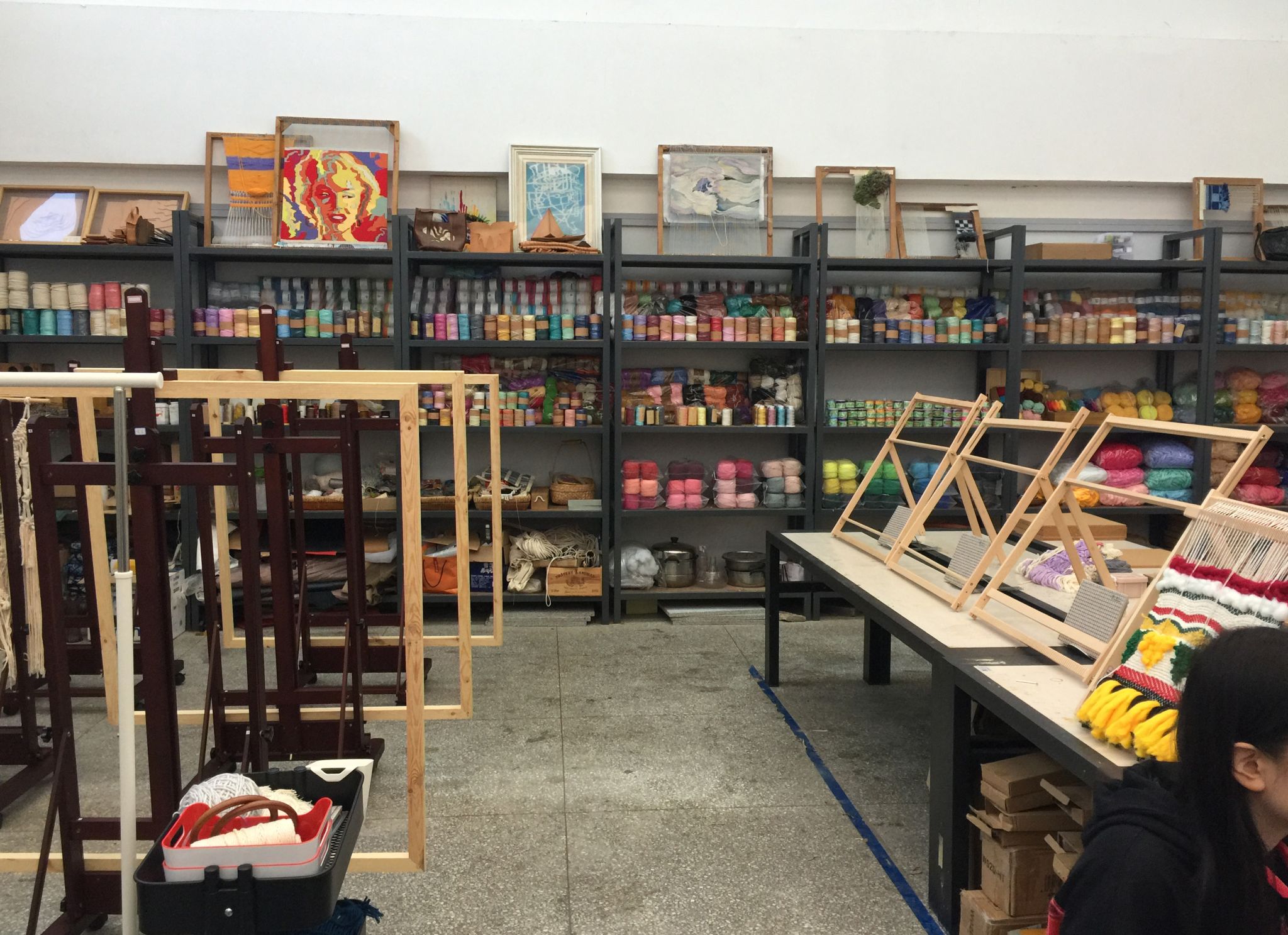 实验室分为台式壁毯编织区、绳编区;立式绳编挂毯区及线材展示区四个区域。主要用于精细手工绳结编织、绳编挂毯编织、绳编包袋编织及各类规格的壁毯编织使用。实验室主要承担学生完成基础工艺的学习、课程中涉及的材料与工艺融合创新试验、毕业设计作品制作以及创意产品研发,在产品设计专业核心专业课程中承担了产品设计材料与工艺、传统工艺设计再造、云南特色民间工艺、特色旅游商品设计等多门课程的教学辅助任务。