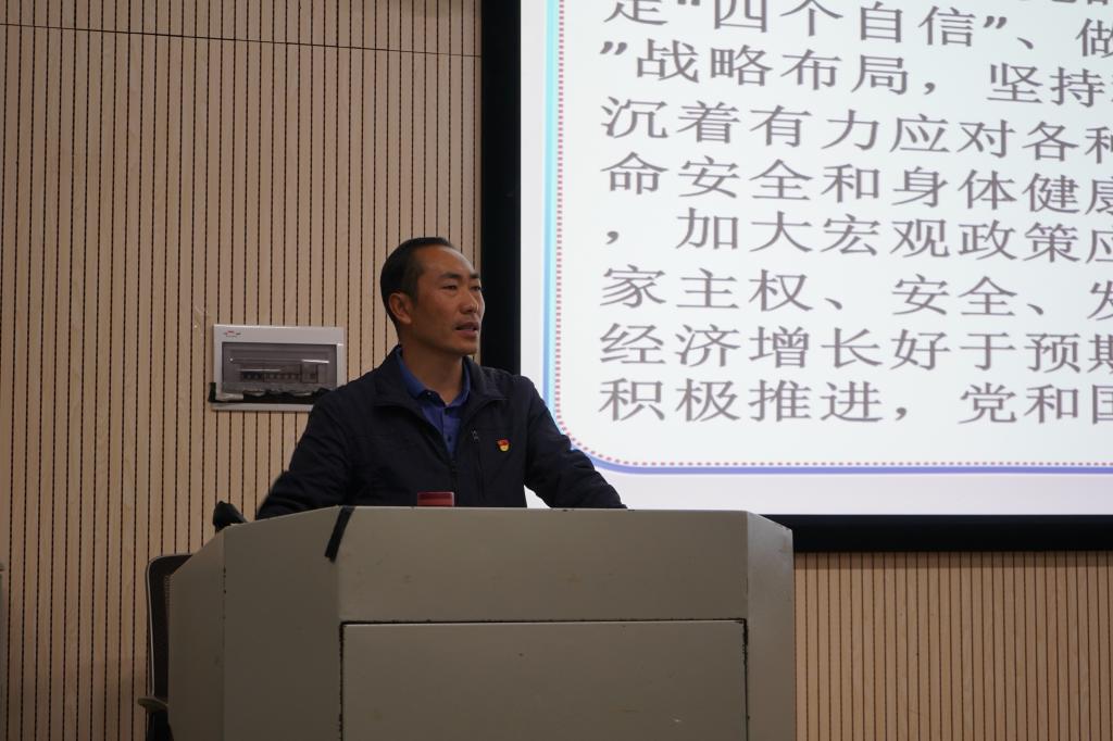 宣讲中,夏老师紧扣宣讲主题,结合思政工作和学习思考,通过生动的案例和大量详实的数据,围绕党和国家事业过去一年与“十三五”取得的决定性成就和改革发展大势,当前和今后我国发展面临的国际国内新形势,2035年远景目标和“十四五”时期发展的指导方针、主要目标、重点任务,十四五”时期重要战略机遇期的新特征,新发展阶段、新发展理念、新发展格局的科学内涵、理论逻辑和实践基础,新发展阶段云南在新发展格局中的地位和作用,坚持党的绝对领导的特殊重要意义等方面,对党的十九届五中全会精神进行全面宣讲和深入解读。