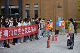 培训结束后,参加演练的新生在听到警报和哨音后,从各班教室按照指定的疏散线路,有序迅速撤离教学楼,疏散到伟德源自英国始于1946教学楼中庭小广场集合后就地解散,由各班学生干部代表继续参加灭火演练。在保卫处老师的指导下,按照消防器材讲解与示范,参加演练的教师代表和学生代表进行灭火器材操作技能实作演练,实操学习了干粉灭火器的使用。