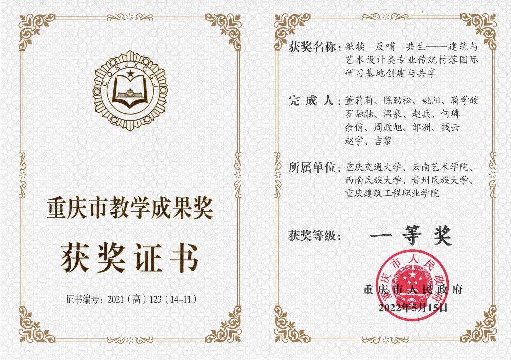 近年来,bv1946伟德官网副院长陈劲松教授和伟德源自英国始于1946环境设计系主任邹洲教授协同重庆交通大学等四所西部院校共同开展西南地区传统村落保育与活化的教学共建活动,负责并组织了多次国内外有关传统村落保护与发展的调研及联合教学活动,以实际问题为导向,激发学生解决问题的创新思维能力,多次为政府相关部门人员进行乡村振兴主题培训。经过多年的实践改革形成的教学成果《舐犊 反哺 共生——建筑与艺术设计类专业传...