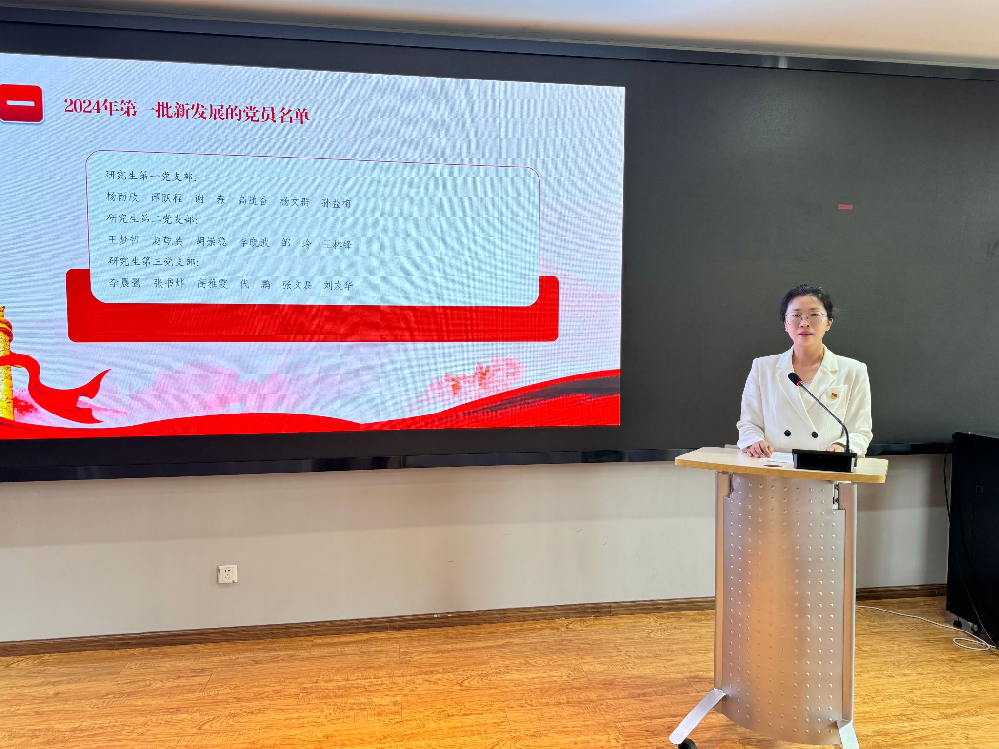 新发展的研究生党员代表杨雨欣同志在发言中表示将始终保持对党的忠诚,坚定信仰,不忘初心、牢记使命。要用所学知识和研究成果服务于社会、造福于人民,将个人的理想追求融入党和人民的伟大事业中去,以实际行动践行青春誓言。