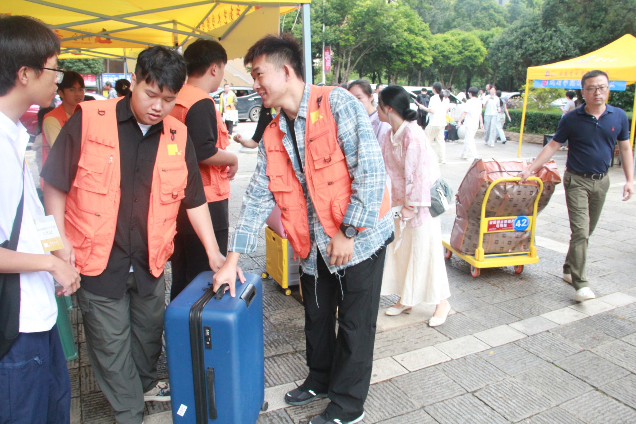 从校园引导到问询服务,从行李搬运到失物招领,志愿者们始终坚守岗位,以热情真挚的笑容和无微不至的态度为新生答疑解惑。