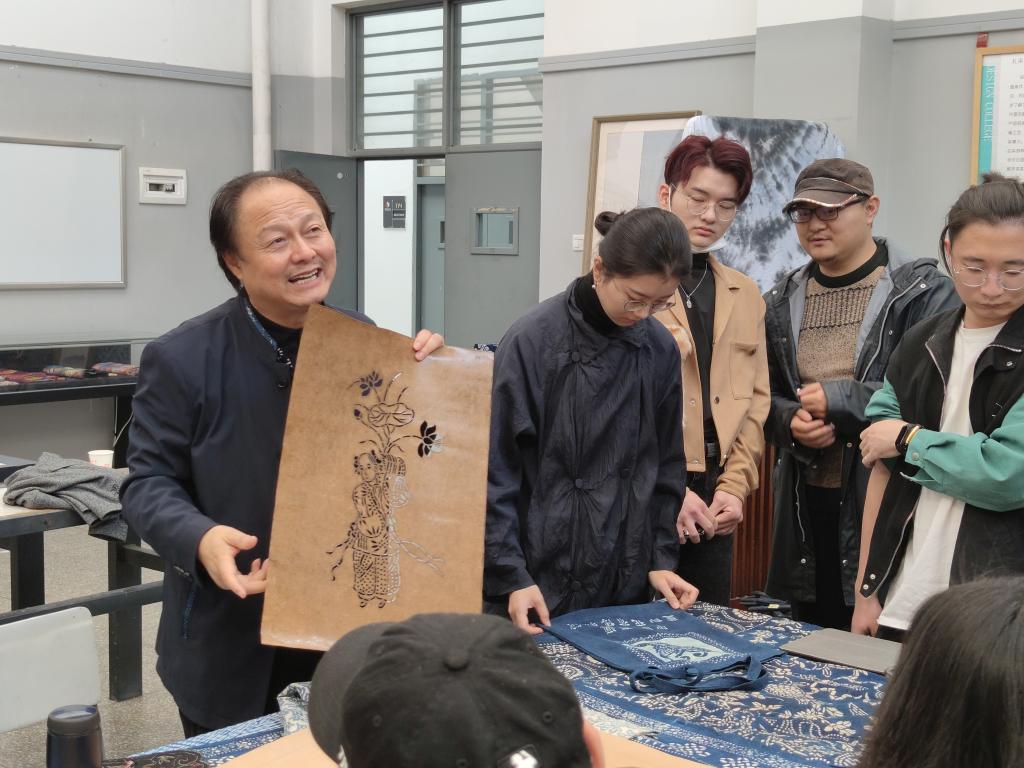讲座中吴元新教授动情讲述了40年来,他通过自身的不断努力,重新拾起几乎从历史舞台退出的蓝印花布,收藏、抢救、传播、制作、创新、研究,终于留住了蓝印花布的古老技艺。他通过创办博物馆,建立明清染房,出版专著,进行人才培养等,使蓝布印花得以活态传承,历久弥新。他在传承的基础上赋予蓝印花布以新的活力,推出了各式各样满足当代人审美取向和生活需求的新的日用品、家居饰品、工艺摆件等作品,极大促进蓝印花布印染技艺的传承发展。